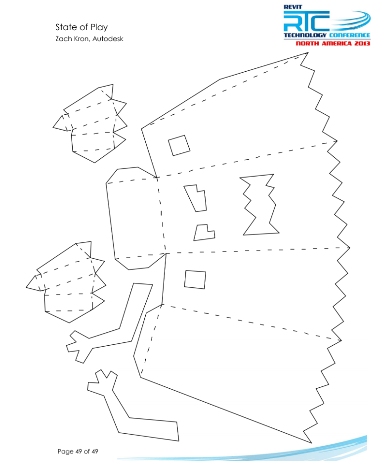 - State of Play: Parametric Tools and Computational Toys with Autodesk Vasari – The handout for the BILT (RTC at the time) class Zach spoke of, if you download it the last page is a DYI paper finger puppet